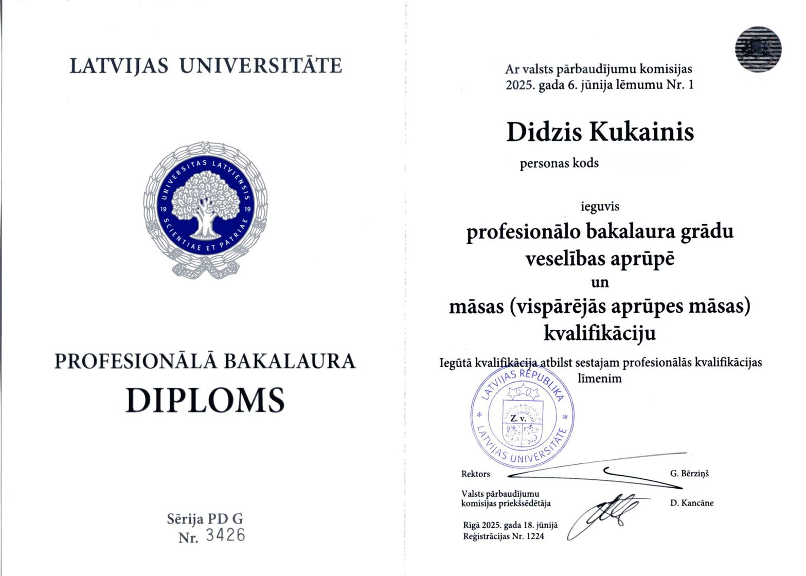 Cieņā - Didzis Daniels Kukainis, Bc. sc. sal.